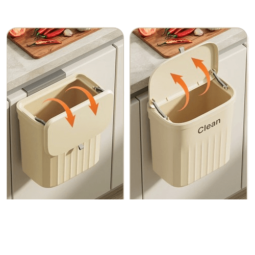 Designad för modern estetik och mångsidig användbarhet, har denna sopbehållare ett unikt lock med dubbel funktion som kan skjutas nedåt eller lyftas uppåt, anpassat efter dina användarpreferenser. Dess innovativa design möjliggör både väggmontering och upphängning, vilket erbjuder flexibla placeringsalternativ för att passa ditt utrymme, oavsett om det är i kök, badrum eller kontor.