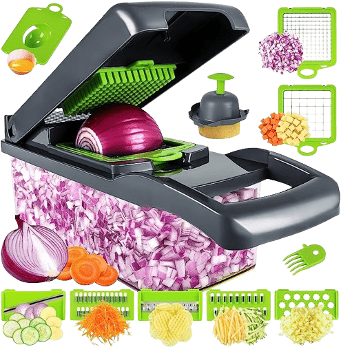 Trött på att spendera timmar med att hacka grönsaker? VivaSlice Pro gör det snabbt och enkelt! Med 8 utbytbara blad skivar, hackar och river den mycket snabbare än en vanlig kniv eller hackare.