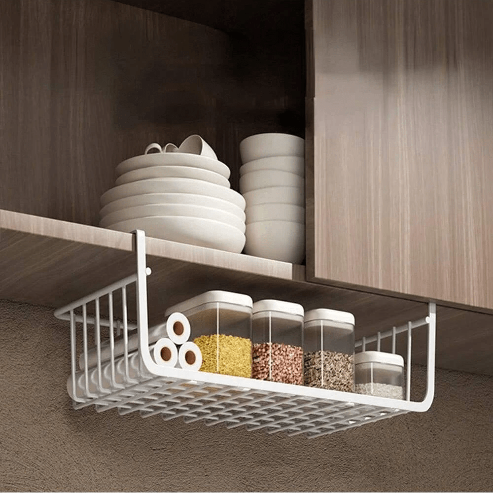 Lyft din köksorganisation med SmartHang 2-Pack Underhyllskorgar. Dessa stiliga och funktionella metallkorgar är designade för att hänga säkert under vilken hylla som helst, ingen borrning krävs för installationen.