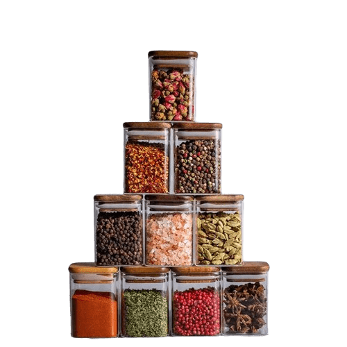 Varje burk är utrustad med ett elegant trälock som inte bara bevarar innehållets fräschhet utan också lyfter din köksinredning till nya höjder av elegans.