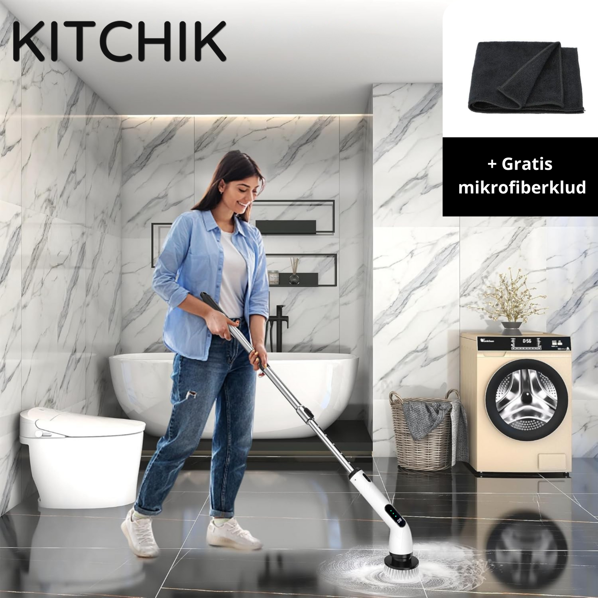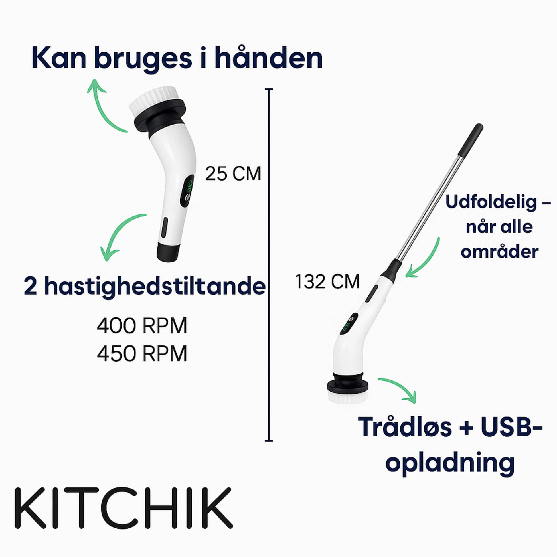 Kitchik PowerScrub gør rengøringen hurtigere, nemmere og mere effektiv end nogensinde før. Den kraftfulde elektriske skrubber fjerner snavs, pletter og indgroet skidt uden, at du behøver skrubbe i hånden.