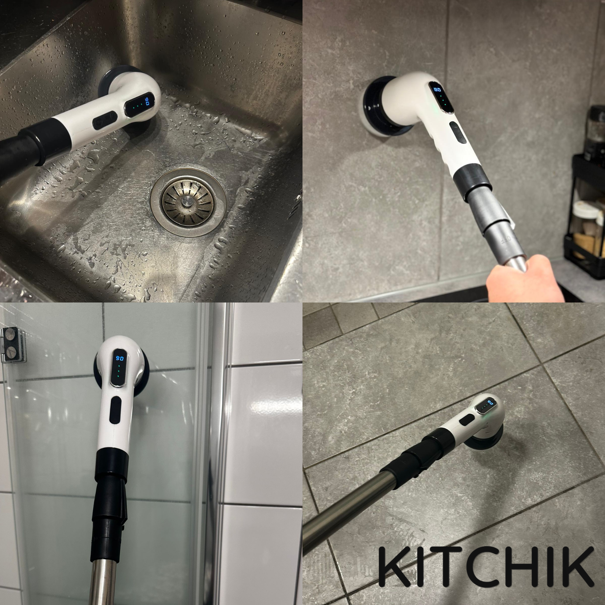 Med Kitchik PowerScrub fjerner du nemt indgroet snavs, kalk og fedt – selv på glas, fuger og svært tilgængelige områder.