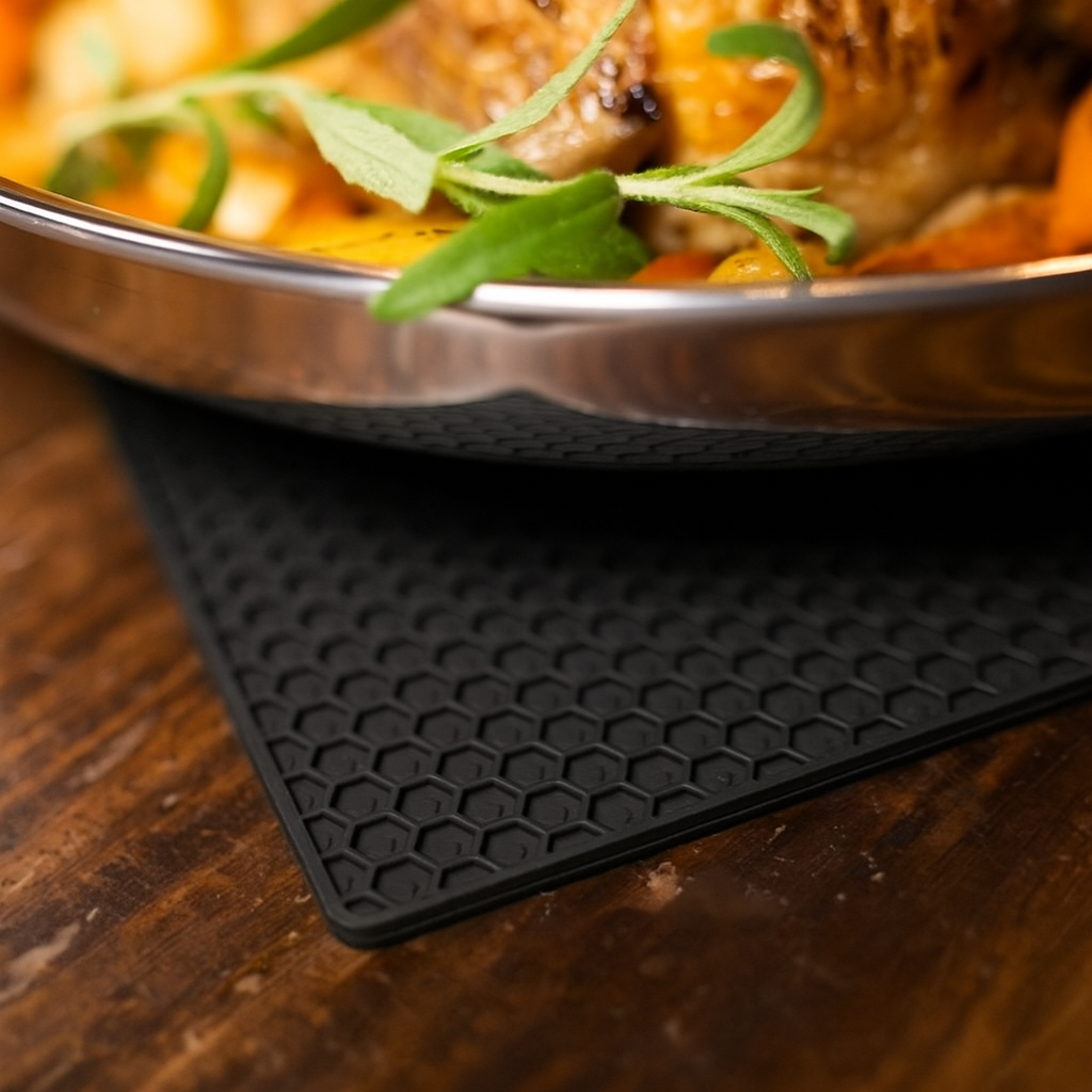 Oavsett om du tar ut en varm form ur ugnen eller behöver ett säkert underlägg till grytan på bordet, gör Kitchik Grytlappar jobbet utan att svika. Tillverkade i slitstark silikon med halkfritt mönster skyddar de både händer och ytor – samtidigt som de ser moderna och stilrena ut i ditt kök.