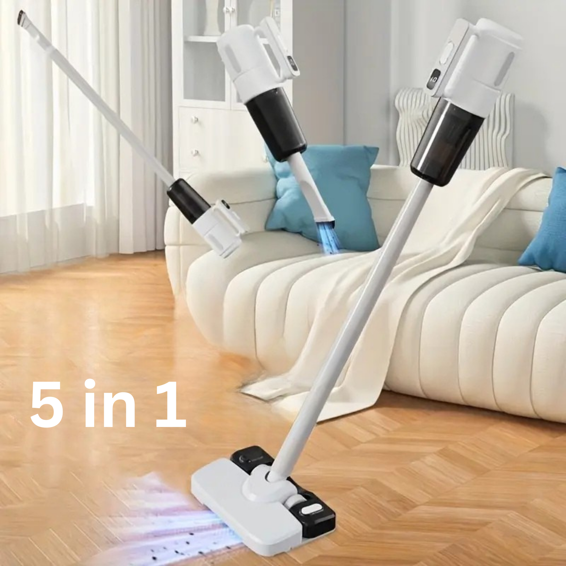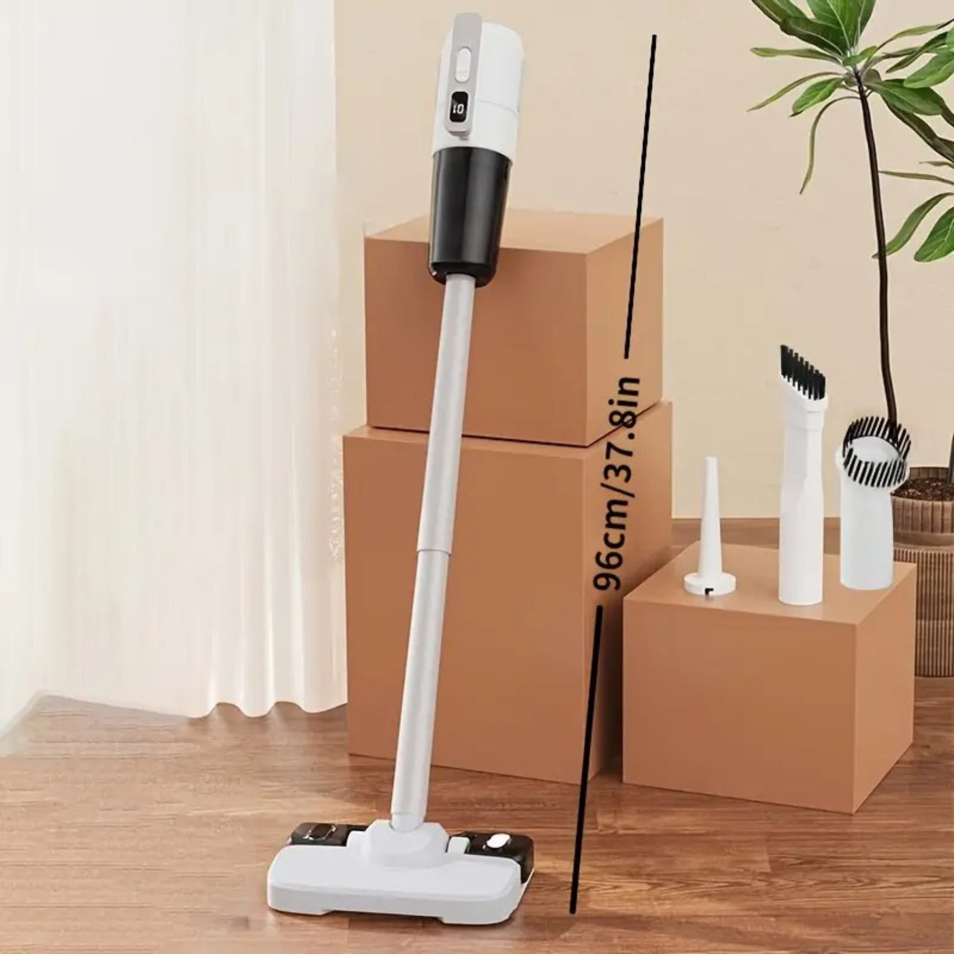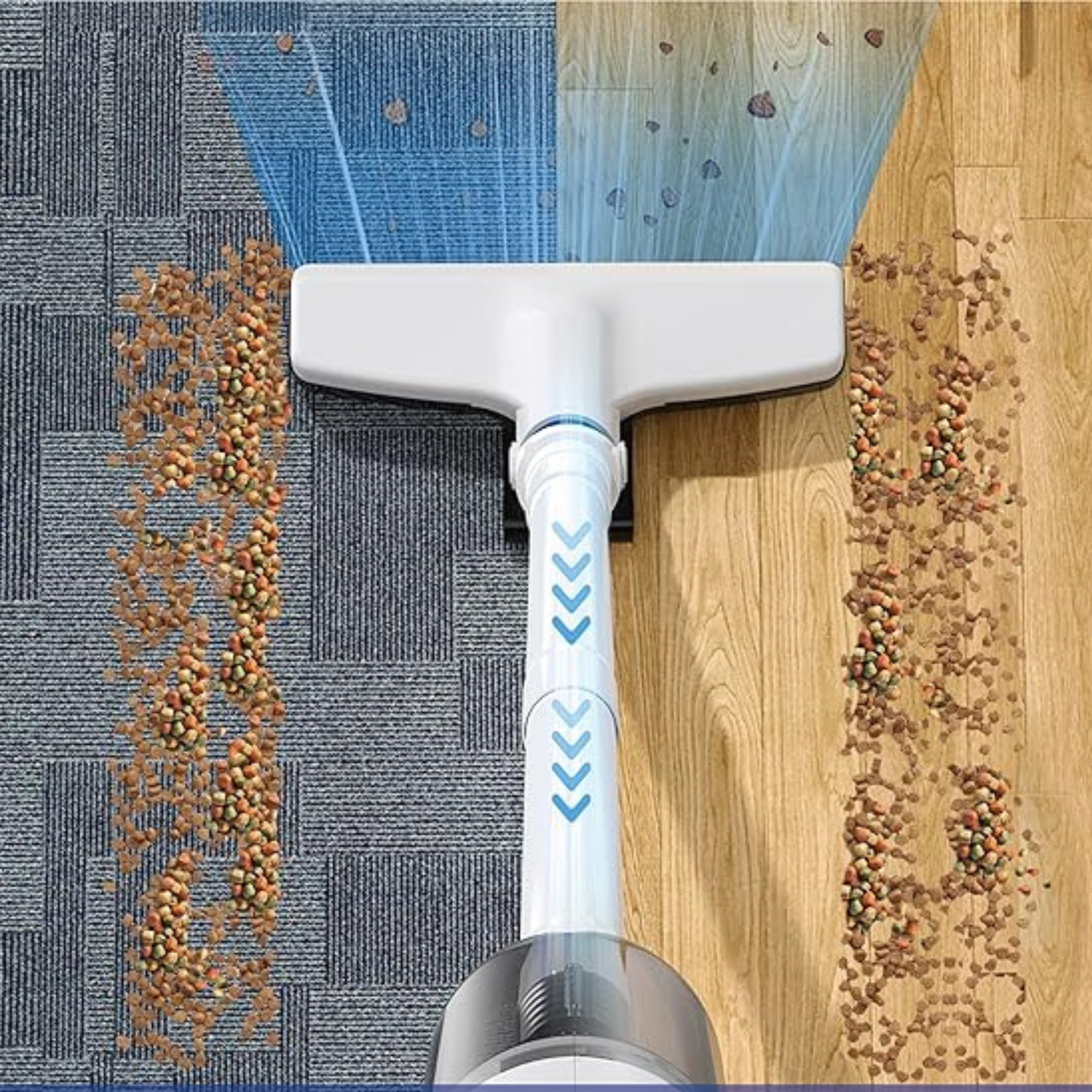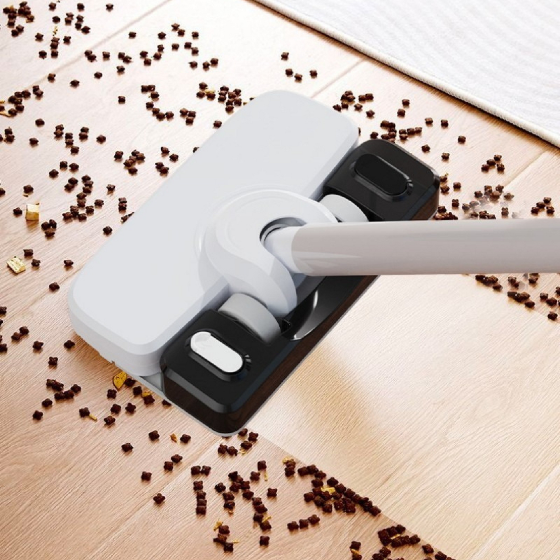 Den har en praktisk mopp på baksidan som suger upp både damm och vatten, vilket gör att du kan städa golvet i ett svep. Dess trådlösa design ger dig full rörelsefrihet, och den är både lätt och kraftfull.