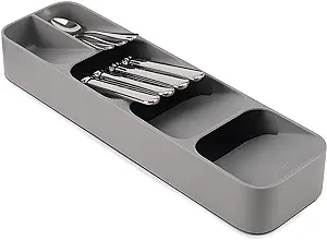 Med fem förvaringsfack gör denna unika lösning för besticksförvaring det enkelt att organisera och komma åt dina bestick, och omvandlar din röriga låda till en modell av effektivitet. Idealisk för alla kök, den säkerställer att dina bestick är snyggt arrangerade och alltid inom räckhåll.