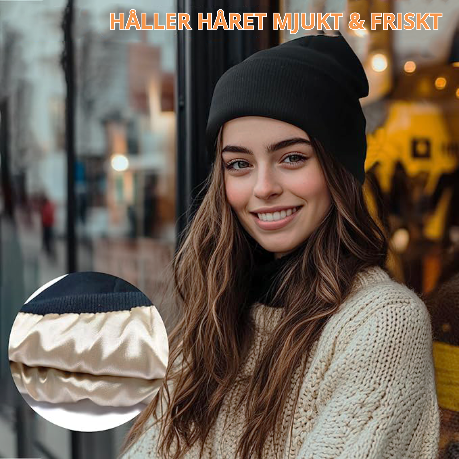 Ta på dig Kitchik Satinfodrad Vintermössa och gå ut med självförtroende hela vintern. Denna stilrena mössa har ett mjukt satin-foder som skyddar håret, minskar torrhet, statisk elektricitet och slitage. Det yttre lagret ger härlig värme och gör den till ditt förstaval på kalla dagar.